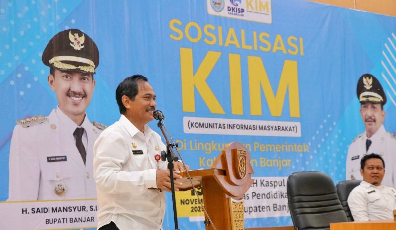 Katajari.com – Kepala Dinas Komunikasi, Informatika, Statistik, dan Persandian (DKISP) Kabupaten Banjar HM Aidil Basith menyampaikan Sosialisasi Komunitas Informasi Masyarakat (KIM), Rabu (19/11/2025) pagi di Aula KH Kasyful Anwar, Bincau, Martapura.