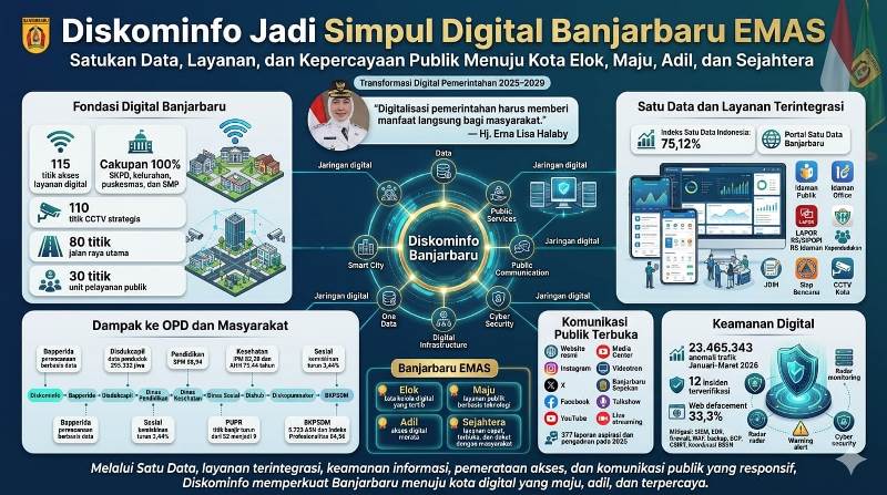 Dengan arah tersebut, Banjarbaru diharapkan tidak hanya memiliki layanan publik digital yang optimal, tetapi juga sistem komunikasi publik yang terintegrasi, inklusif, dan multikanal, sehingga mampu meningkatkan kepercayaan serta partisipasi masyarakat dalam pembangunan daerah.