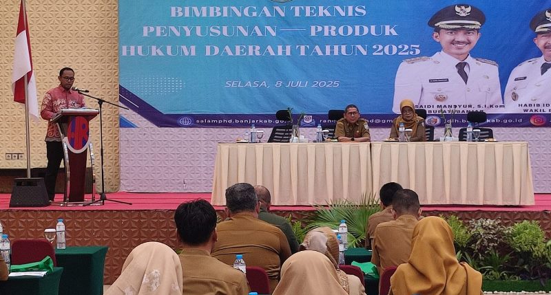 Katajari.com – Bidang Hukum Setda Kabupaten Banjar menggelar Bimbingan Teknis (Bimtek) Penyusunan Produk Hukum Daerah tahun 2025, Selasa (8/7/2025) di Hotel Roditha Banjarbaru.