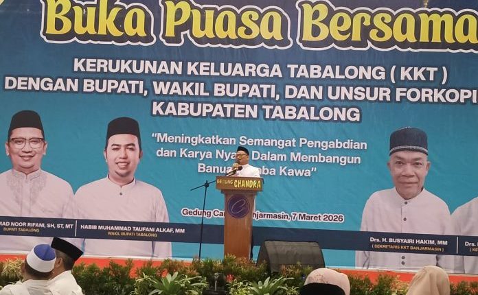 Katajari.com – Bupati Tabalong H Muhammad Noor Rifani bersama Wakil Bupati Tabalong Habib Muhammad Taufani Alkaf silaturahmi Kerukunan Keluarga Tabalong (KKT), Sabtu (7/3/2026) di Gedung Candra, Kota Banjarmasin.