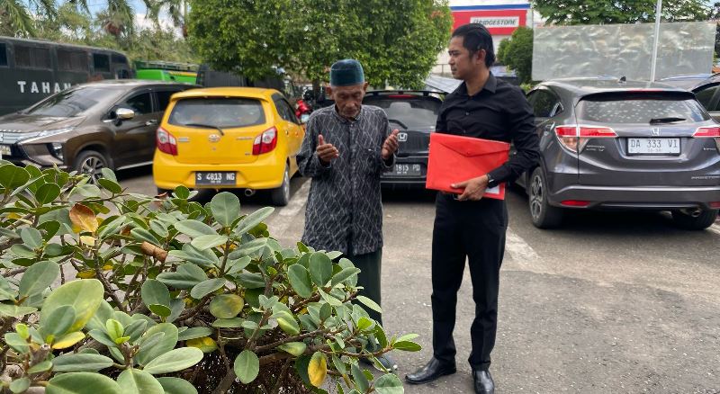 Dengan didampingi kuasa hukumnya, kedatangan lansia itu ke kantor kejaksaan guna memenuhi panggilan yang ke-3 oleh Kejaksaan Negeri Kabupaten Banjar setelah keluarnya putusan kasasi dari Mahkamah Agung.
