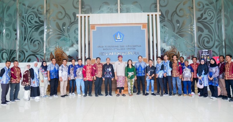 Rombongan Dinas Komunikasi dan Informatika Pemerintah Kabupaten Tabalong diterima langsung oleh Kepala Dinas Komunikasi dan Informatika Kabupaten Badung yang diwakili Kepala Bidang Pengelolaan Informasi Publik, I Made Adi Parwata, S.H., M.A.P.