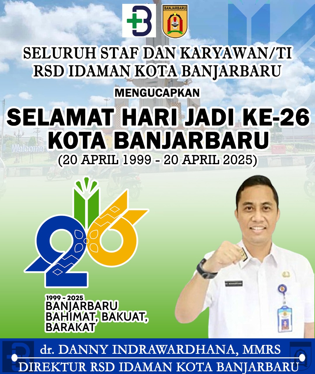 Beranda dr Danny Indrawardhana MMRS RSD Idaman Kota Banjarbaru Mengucapkan Selamat Hari Jadi ke-26 Kota Banjarbaru 20 April 2025 dr Danny Indrawardhana MMRS RSD Idaman Kota Banjarbaru Mengucapkan Selamat Hari Jadi ke-26 Kota Banjarbaru 20 April 2025Katajari19 April 202519 April 2025 dr Danny Indrawardhana MMRS RSD Idaman Kota Banjarbaru Mengucapkan Selamat Hari Jadi ke-26 Kota Banjarbaru 20 April 2025
