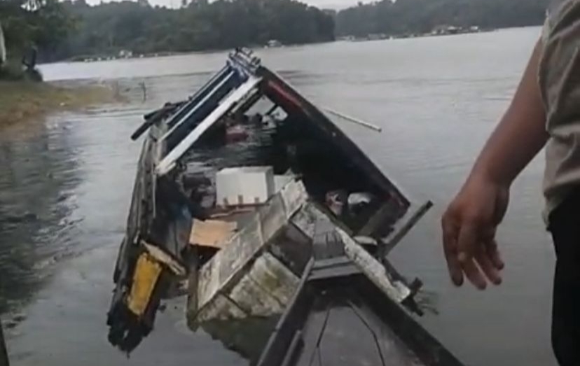 Katajari.com – Diduga karena menabrak batang kayu, dua kapal di lokasi berbeda karam di perairan Bendungan Riam Kanan, Kecamatan Aranio, Kabupaten Banjar. Minggu (1/6/2025). Sekitar pukul 10:30 Wita.
