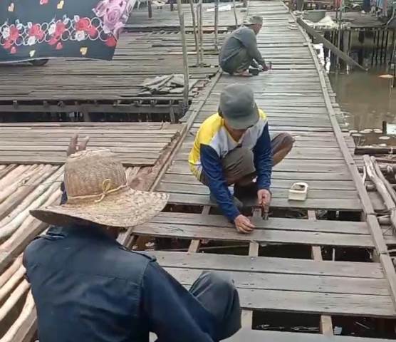 “Dengan semangat gotong royong, para kader Ansor dan Banser memperbaiki bagian-bagian titian yang rusak demi keselamatan dan kenyamanan warga,” katanya.