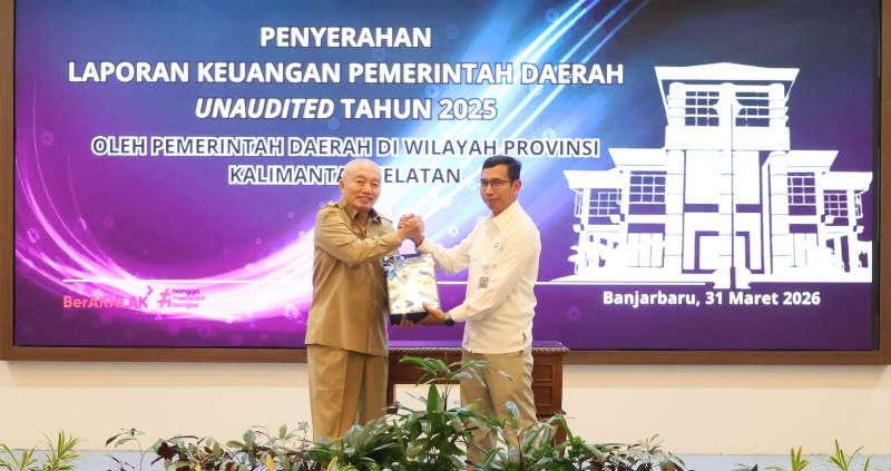 Dikemukakan Gubernur Muhidin didampingi Sekretaris Daerah Provinsi Muhammad Syarifuddin usai menyerahkannya ke BPK RI, Selasa (31/03/2026) di auditorium BPK RI di Banjarbaru.