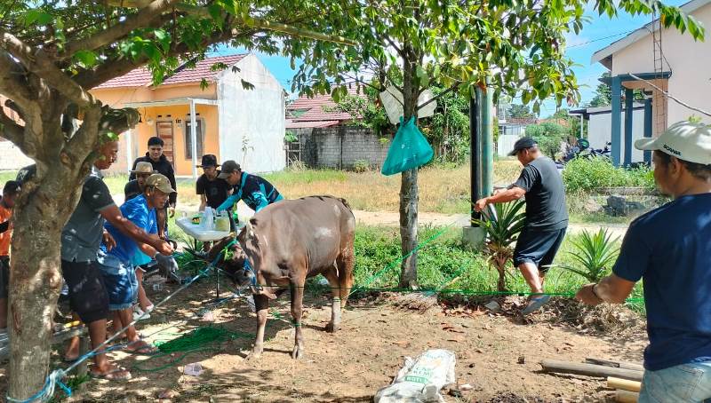 Pelaksanaan ibadah kurban sapi dilaksanakan usai saat Jumat sekitar pukul 14.00 Wita dan dibagikan kepada para penerima setelah saat Asar. (kjc)