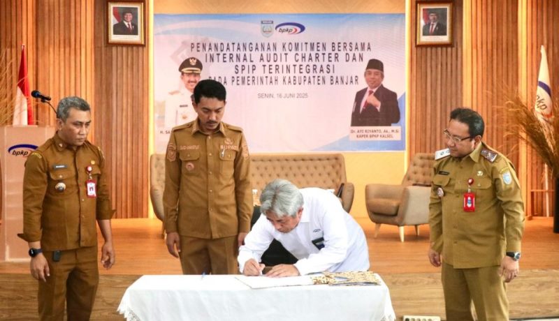 Katajari.com – Pemerintah Kabupaten (Pemkab) Banjar  menandatangani komitmen bersama persetujuan Internal Audit Charter (IAC) dan penguatan Sistem Pengendalian Intern Pemerintah (SPIP) Terintegrasi, dengan Kantor Badan Pengawasan Keuangan dan Pembangunan (BPKP) Perwakilan Kalimantan Selatan.