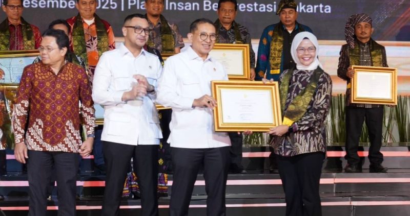 Penghargaan diserahkan Menteri Kebudayaan RI, Fadli Zon, bersama Wakil Menteri Kebudayaan RI, Giring Ganesha Djumaryo kepada Gubernur Kalsel Muhidin diwakili Kepala Dinas Pendidikan dan Kebudayaan (Disdikbud) Kalsel, Galuh Tantri Narinda, Senin (15/12/2025) malam di Jakarta.