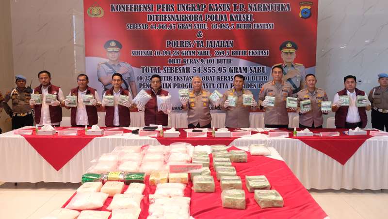 Disampaikan Kapolda Kalsel melalui Kabid Humas Polda Kalsel Kombes Pol Adam Erwindi, S.I.K., M.H, rincian barang bukti yang berhasil diamankan terdiri dari Ditresnarkoba Polda Kalsel 44.661,67 gram Sabu dan 10.085,5 butir Ekstasi.