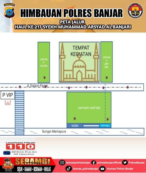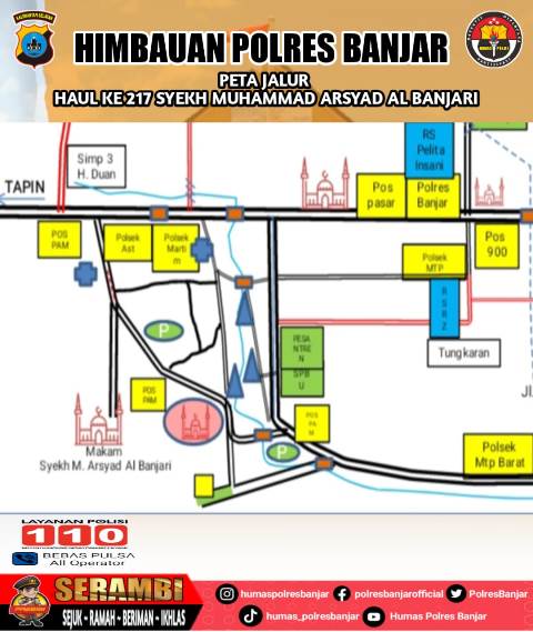 Hal ini guna mengantisipasi dan mencegah terjadinya kemacetan, baik yang datang dari arah Banjarbaru, dari Hulu Sungai, dari Banjarmasin, dari Marabahan maupun jemaah dari seputar Martapura, ikutilah rambu-rambu petunjuk arah serta arahan dari petugas.