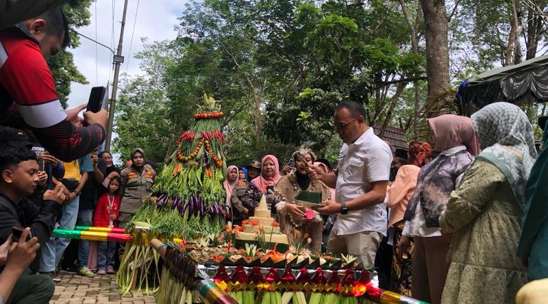 Tumpeng yang berisi hasil panen terbaik masyarakat setempat, mulai dari sayur- mayur hingga buah-buahan, sebagai wujud rasa syukur atas berlimpahnya panen yang mereka terima.