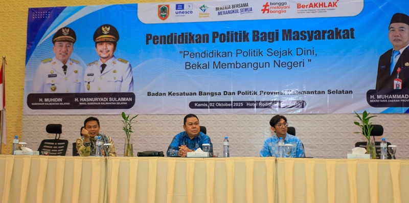 Ini disampaikannya saat membuka kegiatan Pendidikan Politik dengan tema “Pendidikan Politik Sejak Dini, Bekal Membangun Negeri,” Kamis (2/10/2025) di salah satu hotel di Kota Banjarbaru.