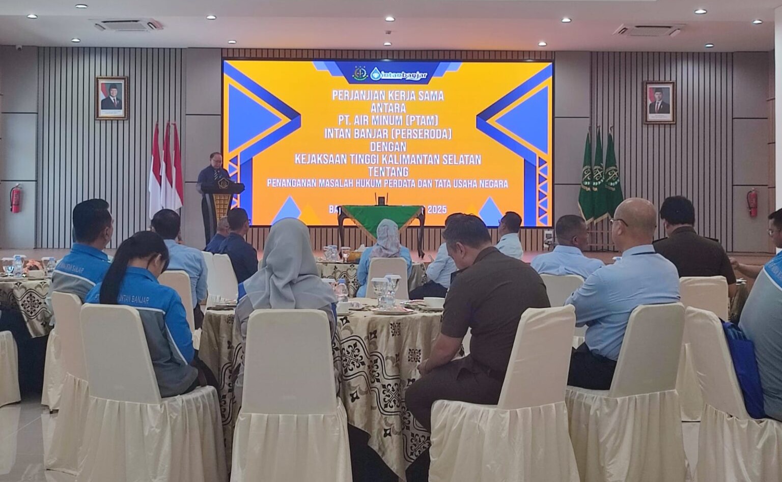 Direktur Utama PT Air Minum Intan Banjar (Perseroda), Syaiful Anwar, menyampaikan bahwa kerja sama ini merupakan langkah strategis perusahaan di bidang hukum sebagai BUMD yang menyediakan pelayanan air minum bagi masyarakat di Kabupaten Banjar dan Kota Banjarbaru.