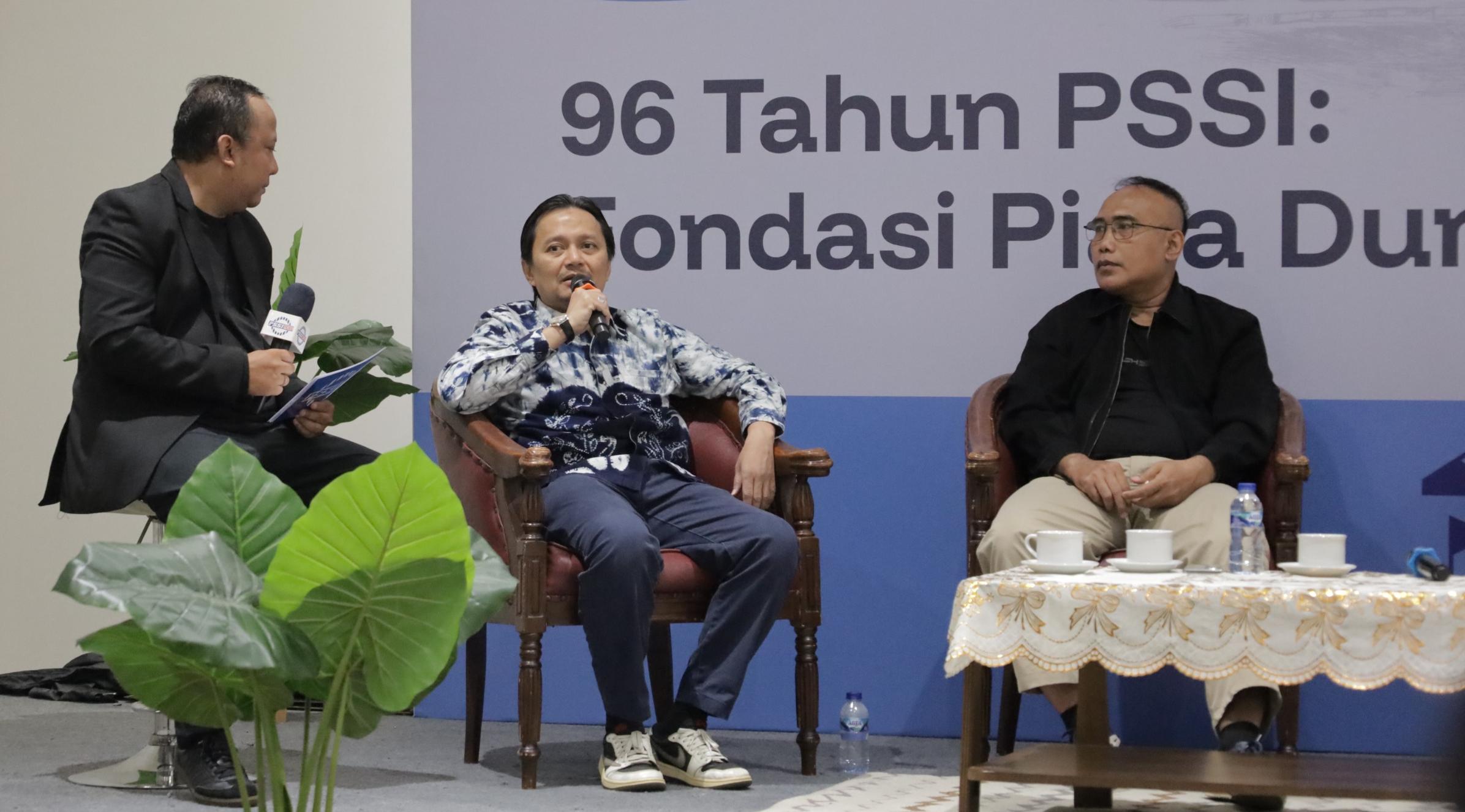 Diskusi ini turut menghadirkan mantan pemain timnas Rochy Putiray, pengamat sepak bola Hadi Gunawan, serta jurnalis senior Kesit B. Handoyo.