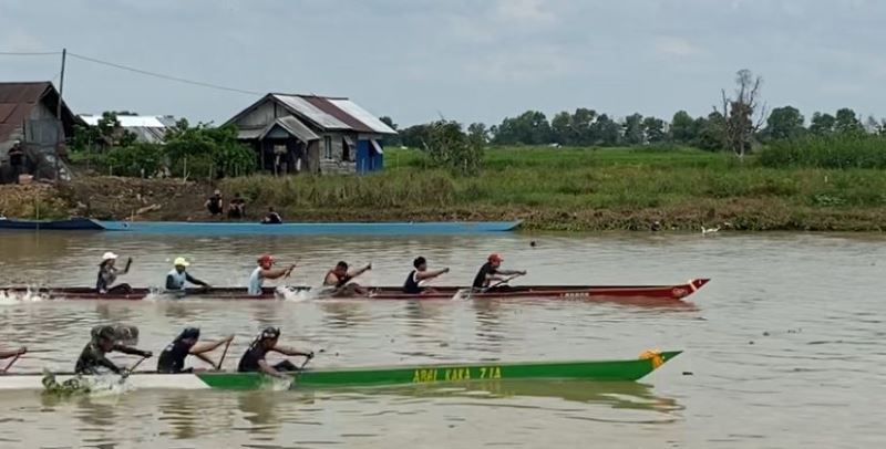 Sebanyak 64 Regu pendayung tradisional saling adu cepat di lintasan sepanjang 350 meter, di Desa Sungai Bangkal, Kecamatan Sungai Tabuk, Kabupaten Banjar, Minggu (24/8/2025). (Foto: katajari.com)