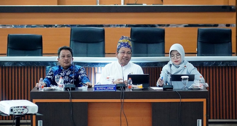 Tampak Hilman didampingi Staf Ahli Bidang Kemasyarakatan dan SDM Setda Kabupaten Banjar Mada Taruna, serta Staf Ahli Bidang Pemerintahan, Hukum dan Politik Kencana Wati.