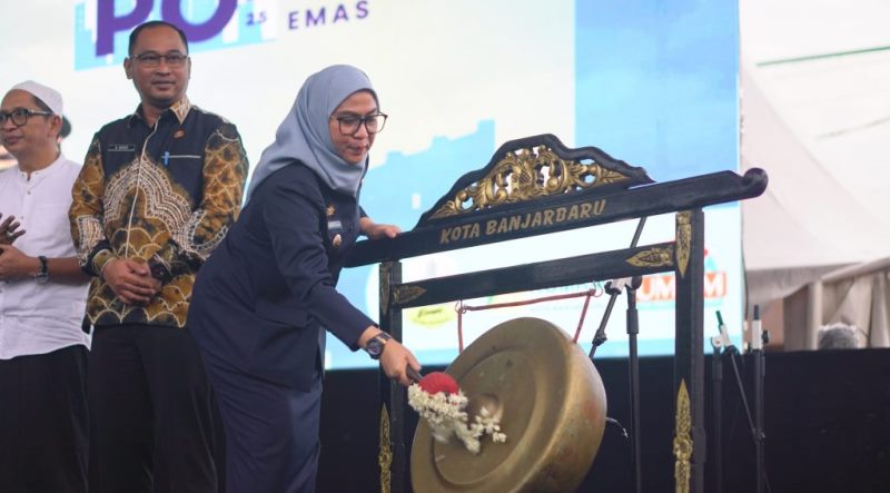 Katajari.com – Wali Kota Banjarbaru, Hj. Erna Lisa Halaby melakukan pemukulan gong menandai pembukaan gelaran Expo Koperasi Usaha Mikro Kecil dan Menengah (KUMKM) Kota Banjarbaru, Kamis (11/9/2025) di Lapangan dr. Murdjani.