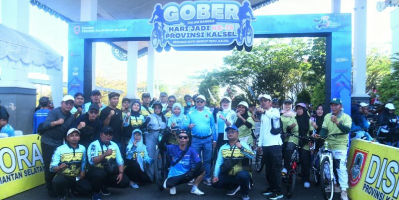 “Seluruh karyawan-karyawati Pemprov Kalsel dan semua peserta gowes yang tampak semangat dan penuh kegembiraan, suasana kebersamaan yang terangkai dalam kegiatan Gober 2025 di pagi ini,” ucap Syarifuddin membacakan sambutan Gubernur Kalsel.