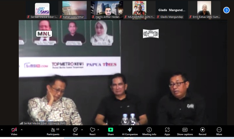 Dialog nasional yang mengambil tempat di Kantor SMSI Pusat, Jalan Vereran, Jakarta, dan diperluas dengan aplikasi zoom berlangsung Selasa, 7 Oktober 2025.