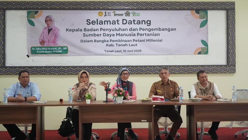 Guna terus memaksimalkan Brigade Pangan (BP), Kementan melalui Kepala Badan Penyuluhan dan Pengembangan Sumber Daya Manusia Pertanian (BPPSDMP), Idha Widi Arsanti berkunjung ke Kabupaten Tanah Laut di Provinsi Kalimantan Selatan, Selasa (10/06/2025).