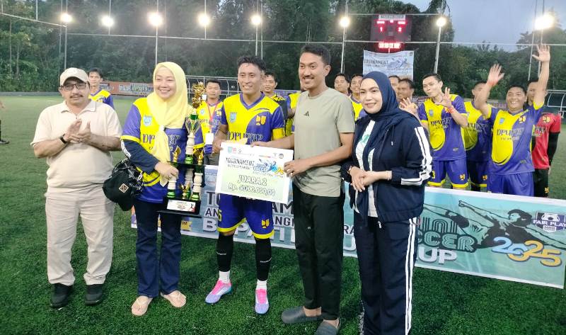 Penyerahan Juara II dari Bupati Banjar H Saidi Mansyur diterima Kepala DPUPRP Kabupaten Banjar didampingi para pemain.