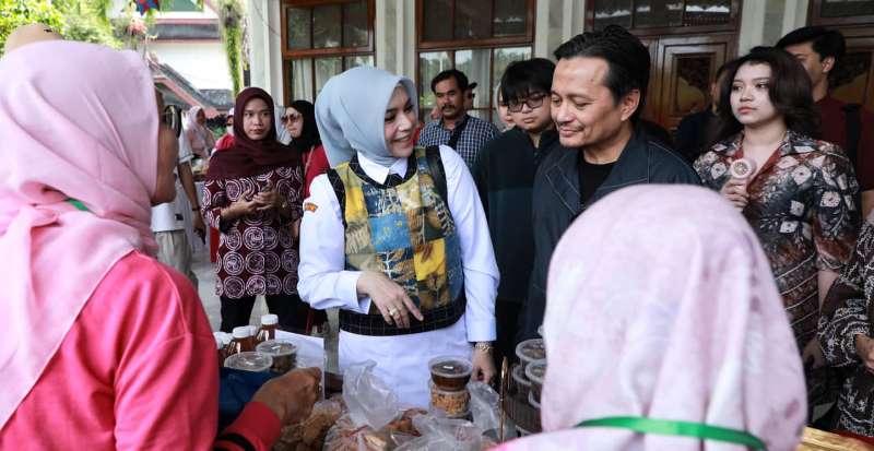 Sebelum acara dimulai, Wagub Hasnuryadi se-keluarga, terlebih dulu mengitari semua stand UMKM yang ada dan membeli produk-produk makanan/minuman yang ditampilkan di area teras Mahligai Pancasila.