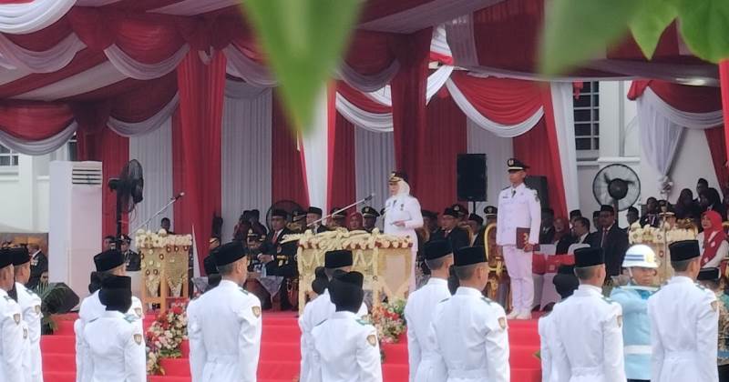 Ia menjadi inspektur upacara peringatan HUT ke-80 Proklamasi Kemerdekaan Republik Indonesia, Minggu (17/08/2025) di kawasan Lapangan Dr Murjani Kota Banjarbaru.