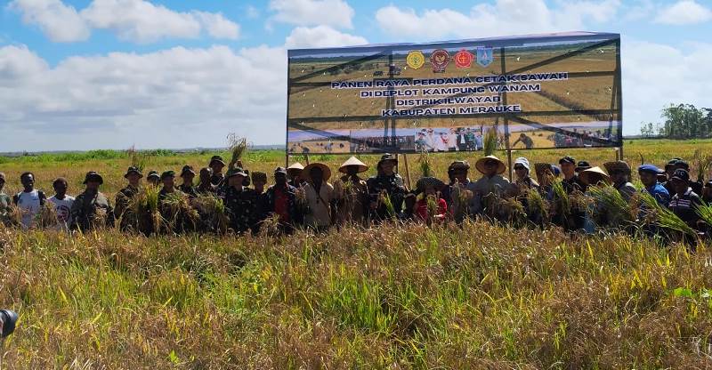 Pembukaan panen padi perdana, dibuka langsung oleh kepala kampung Wanam Merauke, tujuannya supaya mereka mendeklarasikan bahwa tanah Wanam Merauke sangat cocok bertanam padi.