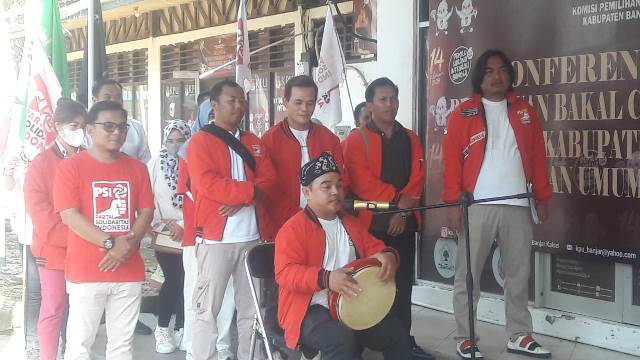 Katajari.com – Saat Partai Solidaritas Indonesia (PSI) Kabupaten Banjar Provinsi Kalimantan Selatan (Kalsel) mengantarkan berkas pendaftaran pengajuan bakal calon legislatif, di antara rombongan nampak seorang seniman tradisional Madihin yang cukup menyolok kehadirannya.
