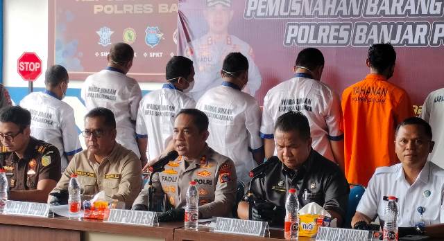 Press Conference Kapolres Banjar AKBP Dr Fadli pada pemusnahan barang bukti sabu, Rabu (17/9/2025). (Foto: katajari.com)