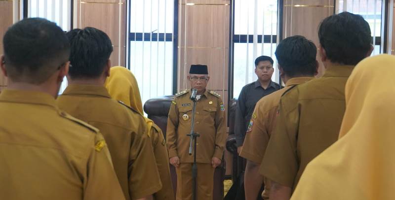 Bupati Rusli menyampaikan ucapan selamat kepada para pejabat yang baru dilantik dan berharap agar amanah jabatan dapat dijalankan dengan penuh tanggung jawab serta semangat baru.