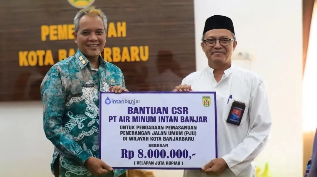 Katajari.com – PT Air Minum Intan Banjar (Perseroda) kembali menyerahkan dana bantuan sosial kemasyarakatan (CSR) kepada Pemerintah Kota Banjarbaru, kali ini dimanfaatkan untuk pemasangan Penerangan Jalan Umum (PJU).