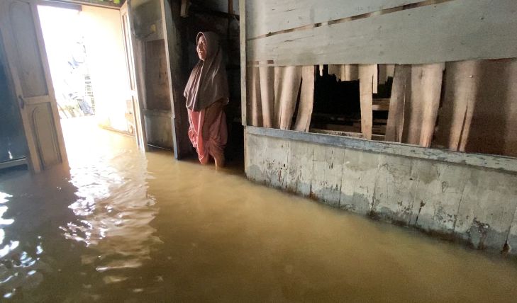 “Untuk pergi ke warung saja susah. Karena akses sudah terendam” katanya.