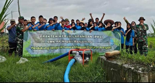 Dukungan tersebut adalah dengan melaksanakan kegiatan Praktik Kerja Lapang bagi siswa di lokasi yang menjadi target pompanisasi dan perluasan area tanam lahan pertanian.