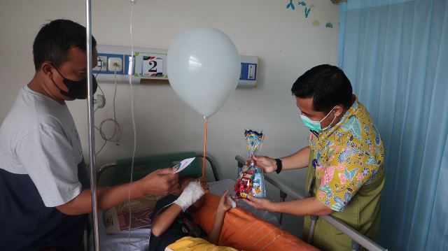 Suasana pun semakin terasa hangat saat pasien anak juga diberikan balon sehingga antusiasme mereka semakin meningkat. Senyum lebar tergambar sangat jelas pada wajah para pasien anak. (katajari.com)