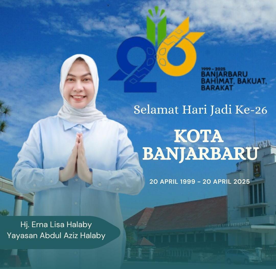 Beranda Hj Erna Lisa Halaby Mengucapkan Selamat Hari Jadi ke-26 Kota Banjarbaru 20 April 2025 Hj Erna Lisa Halaby Mengucapkan Selamat Hari Jadi ke-26 Kota Banjarbaru 20 April 2025Katajari.Com20 April 202520 April 2025 Hj Erna Lisa Halaby Mengucapkan Selamat Hari Jadi ke-26 Kota Banjarbaru 20 April 2025