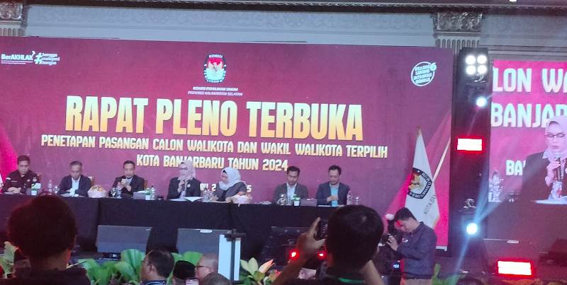 Akhirnya, Rapat Pleno Terbuka KPU Provinsi Kalimantan Selatan melakukan penetapan pasangan calon Hj Erna Lisa Halaby dan Wartono sebagai Wali Kota dan Wakil Wali Kota Banjarbaru periode 2025-203 pada Rabu 28 Mei 2025, pukul 21.11 Wita.