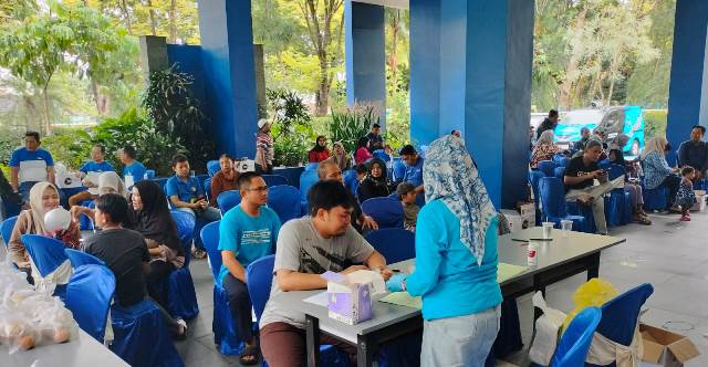 Katajari.com – Dengan membaringkan badan rebahan di ranjang lipat portabel, Mahyuni tampak diambil darahnya menggunakan jarum steril yang dimasukkan ke pembuluh darah di pergelangan tangan kanan, Sabtu (5/7/2025) pagi di halaman kantor PT Air Minum Intan Banjar (Perseroda) di Banjarbaru.