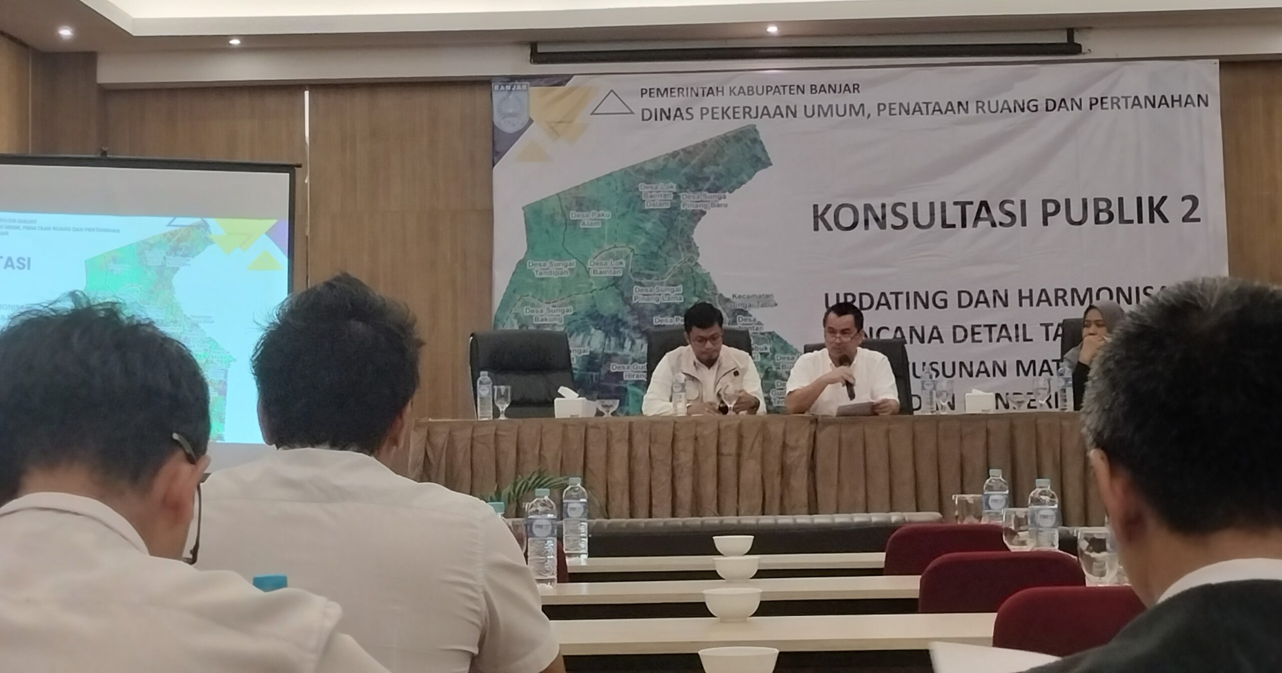 Katajari.com – Dinas Pekerjaan Umum Penataan Ruang dan Pertanahan (PUPRP) Kabupaten Banjar menggelar Konsultasi Publik (KP) 2 Updating dan Harmonisasi Rencana Detail Tata Ruang  (RDTR) wilayah perencanaan perkotaan Sungai Tabuk, Rabu (26/11/2025).