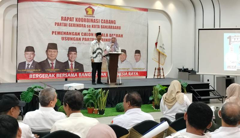 Rakorcab Partai Gerindra Kota Banjarbaru dan Pemenangan Calon Kepala Daerah Usungan Partai Gerindra tingkat provinsi Kalsel dan Kota Banjarbaru, ditandai dengan sambutan pertama oleh Neni Hendriyawati.