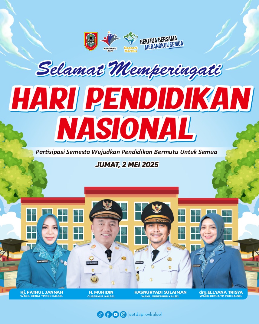 Beranda Pemerintah Provinsi (Pemprov) Kalimantan Selatan (Kalsel) Selamat Memperingati Hari Pendidikan Nasional 2 Mei 2025 Pemerintah Provinsi (Pemprov) Kalimantan Selatan (Kalsel) Selamat Memperingati Hari Pendidikan Nasional 2 Mei 2025Katajari.Com2 Mei 20252 Mei 2025 Pemerintah Provinsi (Pemprov) Kalimantan Selatan (Kalsel) Selamat Memperingati Hari Pendidikan Nasional 2 Mei 2025