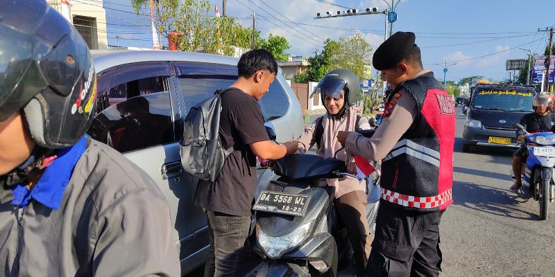 Aksi pembagian bendera ini tidak hanya dilakukan oleh Polres Banjar, tetapi juga melibatkan sembilan Polsek di bawah jajaranny.